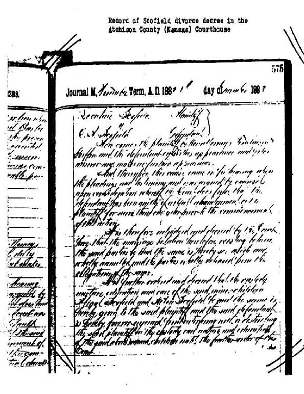 copy of the divorce decree filed by the court in Atchison County Kansas. His